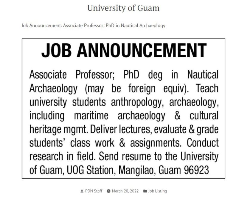 Associate Professor, Nautical Archaeology https://pdnjobs.wordpress.com/ Share this: Click to share on Facebook (Opens in new window) Facebook Click to share on X (Opens in new window) X Like Loading...